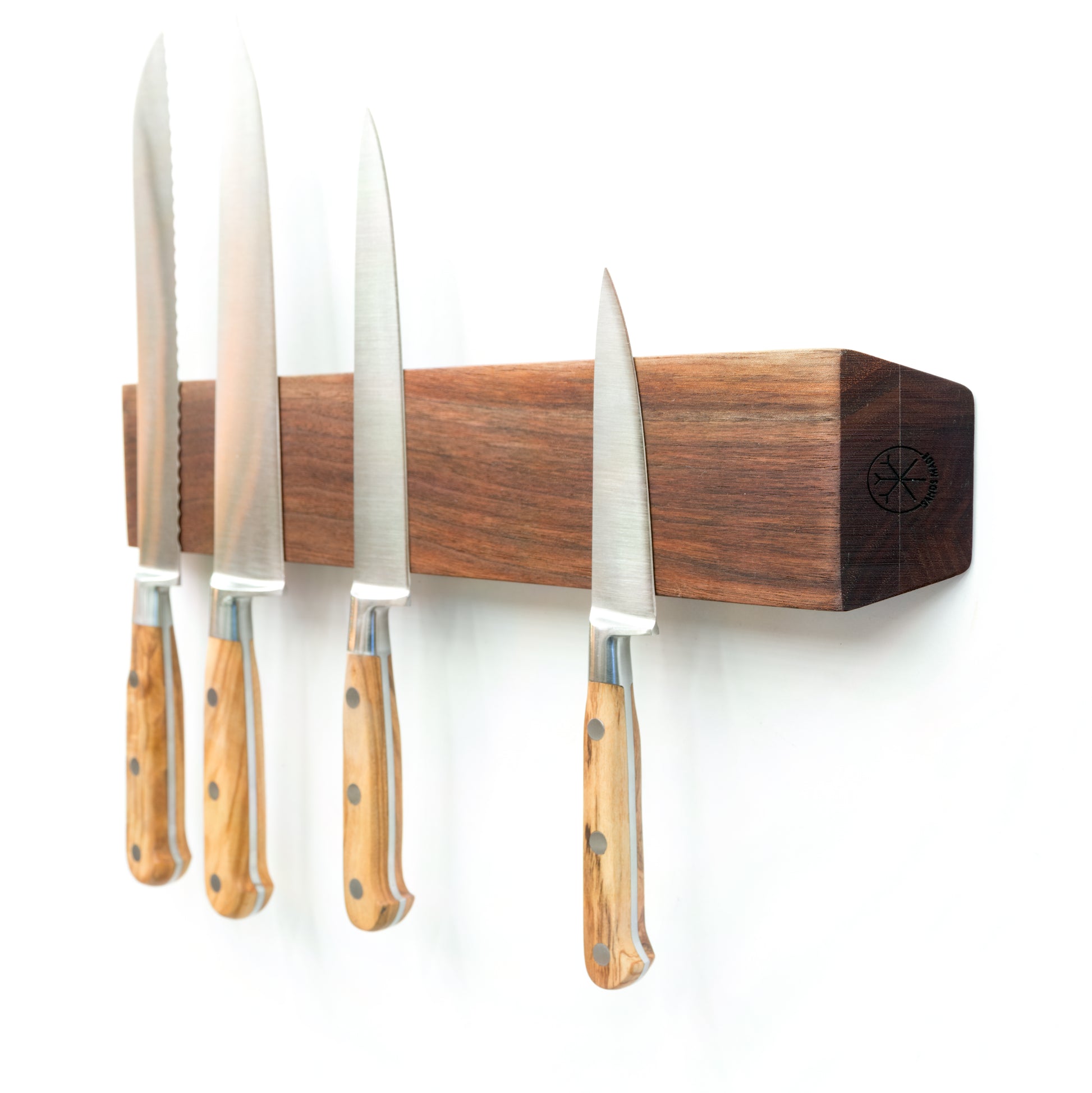 Powerful magnets are hidden beneath the timber finish providing a non-scratch and durable surface to store your knives. The Knife Rack is finished with organic coconut oil to provide a porous surface, allowing your knives to breath while being stored. Precision crafted from sustainably sourced (FSC certified) hardwoods, this knife rack is designed to last.